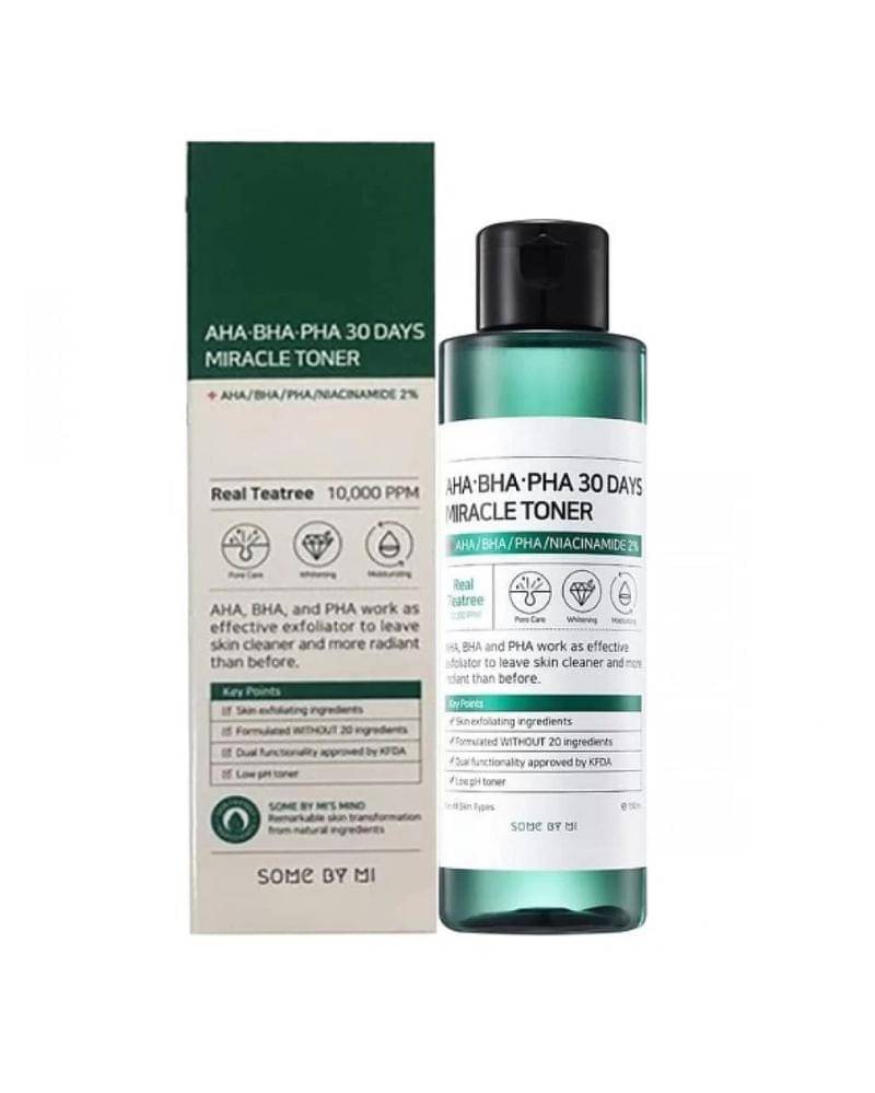 Salah satu produk yang Mama bisa coba adalah Some By Mi AHA BHA PHA 30 Days Miracle Toner. Toner ini dirancang khusus untuk exfoliasi, membantu mengangkat sel-sel kulit mati dengan efektif.