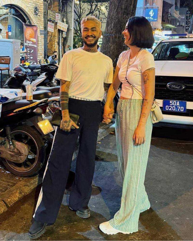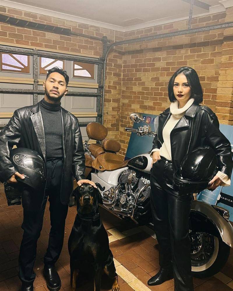 Keduanya sama-sama mengenakan celana panjang, dilengkapi dengan sepatu berwarna hitam juga. Tidak lupa, untuk keselamatan keduanya membawa helm yang juga berwarna serasi. Gaya mereka yang kompak dan penuh percaya diri ini membuat siapapun yang melihatnya enggan untuk bersaing.