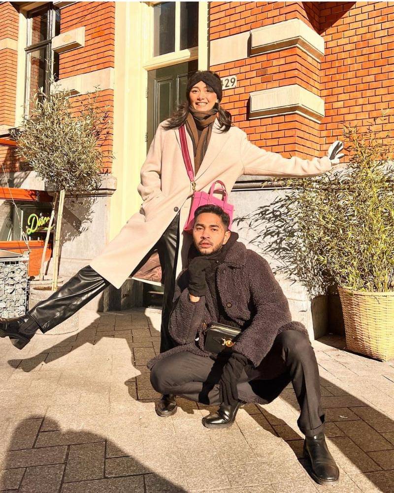 Keduanya membawa tas masing-masing yang serasi dengan outfit liburan mereka kali ini. Berlibur di negara lain, membuat keduanya memutuskan untuk memakai sepatu yang trendi tapi juga nyaman.
