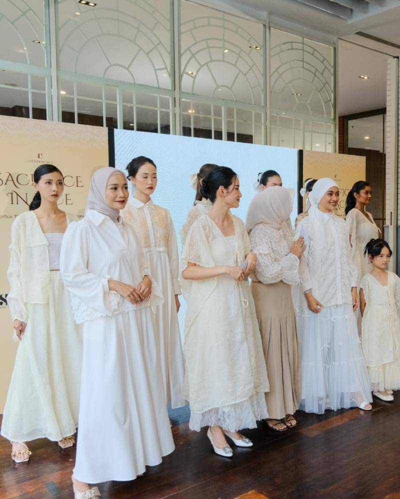 Cotton In Lace menandai debutnya di ranah modest fashion dengan koleksi terbarunya. Terinspirasi dari sosok perempuan tangguh, mandiri, dan anggun yang rela berkorban demi kebahagiaan orang lain dan dirinya sendiri.