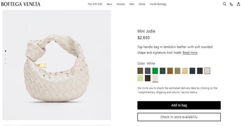 Ternyata, tas mungil berwarna putih itu keluaran Bottega Veneta series Mini Jodie. Harganya sendiri sekitar 2.650 USD atau setara dengan Rp 41,4 juta.