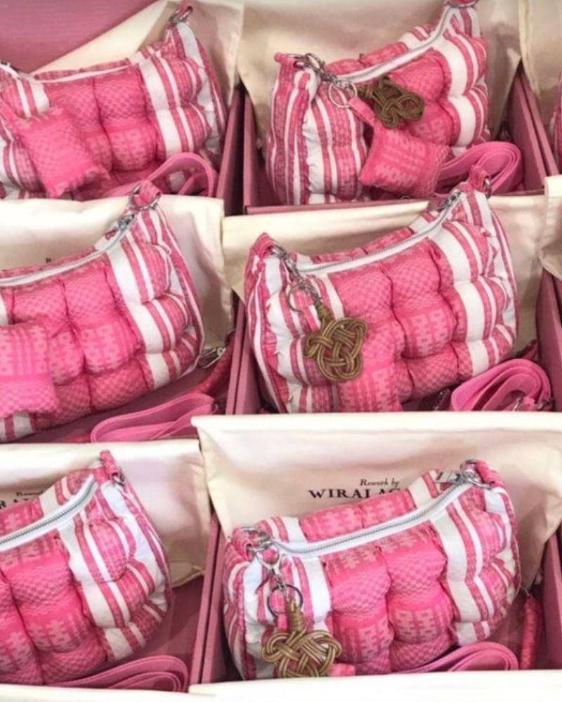 Setelah viral dengan tas kasur kapuk, Wira pun memproduksi tas dengan bahan kain lap atau serbet makan motif kotak-kotak, yang terinspirasi dari tema HUT RI.