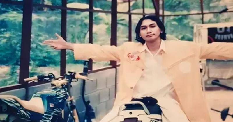 Rambut gondrong hingga sebahu membuatnya tampil macho pada kala itu.