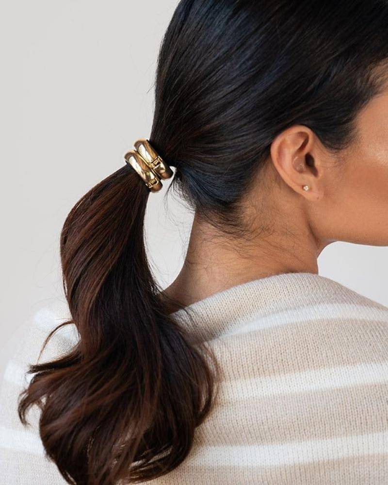 Ponytail cuffs menawarkan cara yang mudah dan praktis untuk menambahkan sentuhan gaya pada penampilan apapun. Baik kamu ingin bergaya formal maupun informal. Aksesori rambut satu ini juga sangat serbaguna, karena dapat digunakan untuk menciptakan gaya ekor kuda rendah yang ramping dan profesional atau menambahkan sentuhan berani dan dramatis pada gaya rambut yang tinggi dan bervolume.