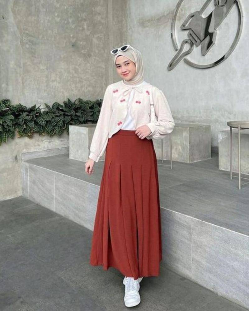 Warna cherry red memang memiliki daya tarik tersendiri, terutama di momen spesial seperti Lebaran. Warna merah cerah ini memberikan kesan berani dan penuh energi, tetapi tetap bisa tampak elegan jika dipadukan dengan item-item netral.