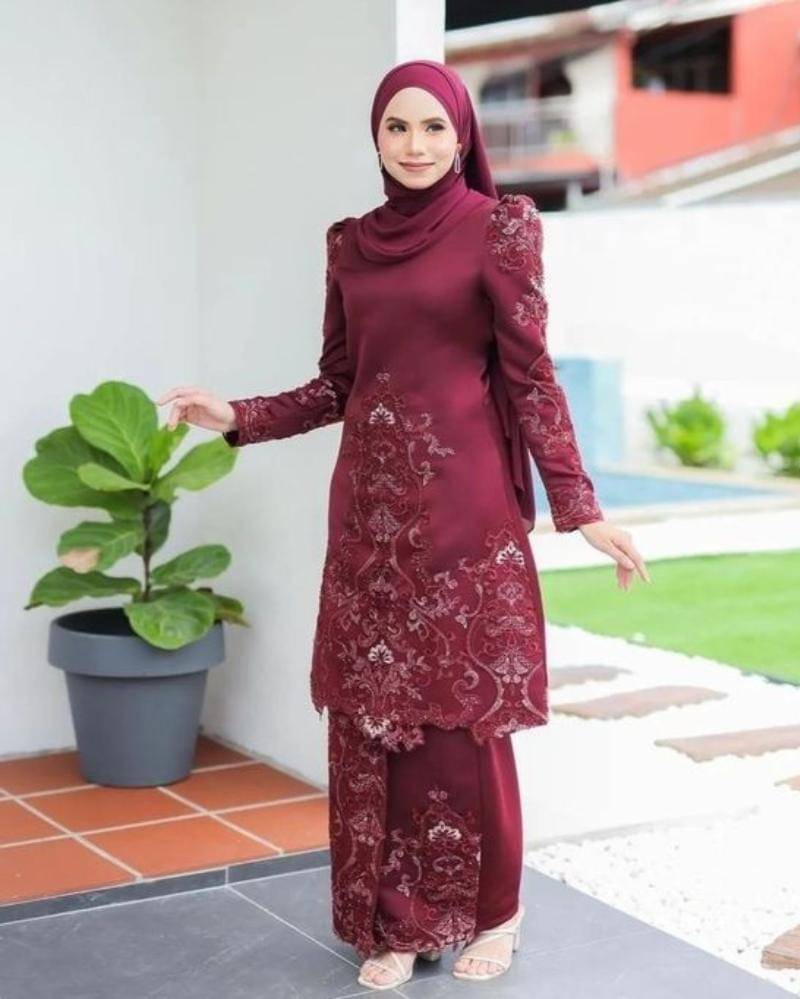 Burgundy memiliki nuansa yang lebih gelap dan sophisticated, sehingga sempurna untuk memberi kesan elegan dan dramatis, apalagi di momen spesial seperti Lebaran.