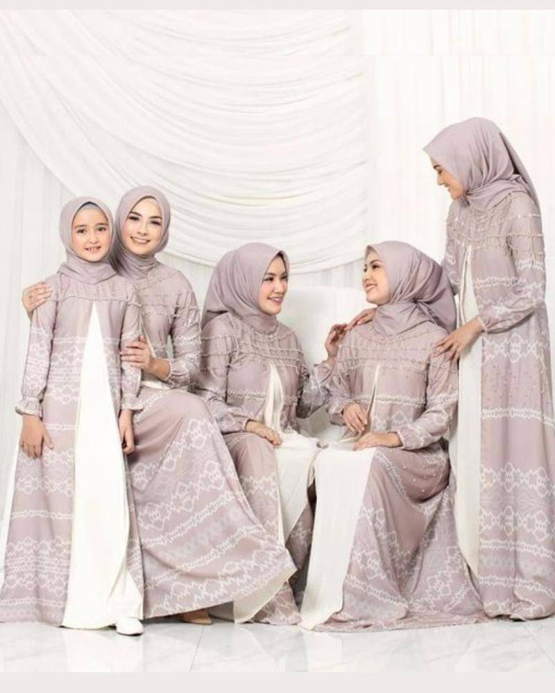 Untuk Lebaran nanti, Mama bisa memilih busana seperti gamis atau dress dengan warna mauve yang memberikan kesan santai namun tetap berkelas.