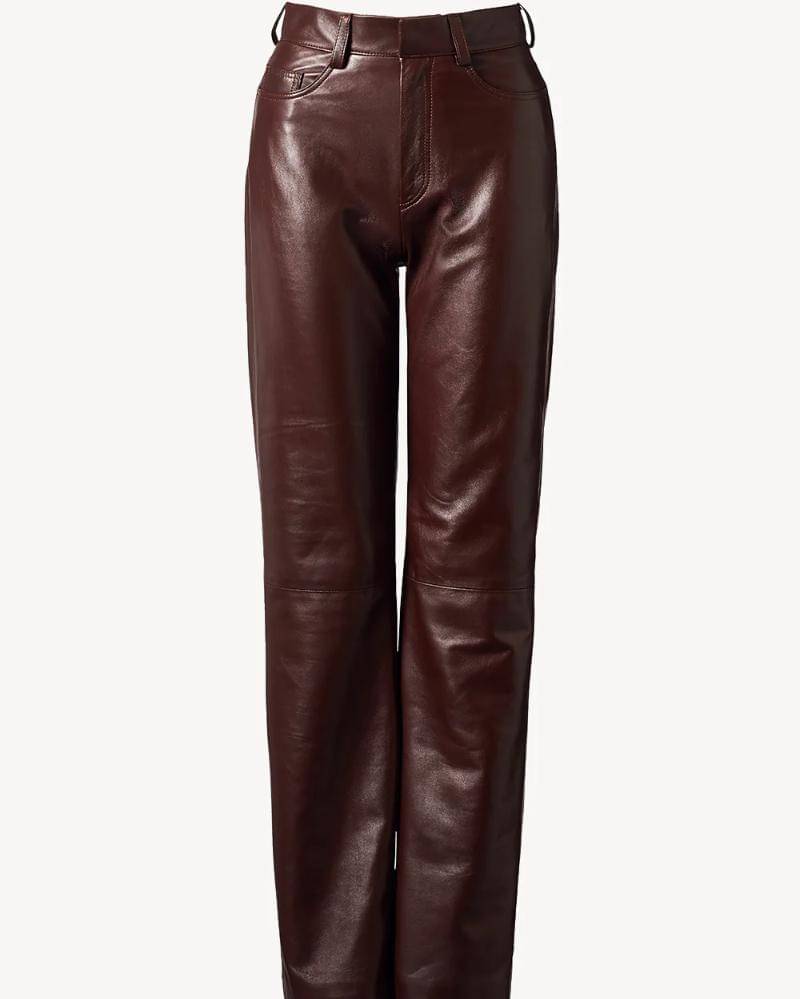Celana panjang kulit adalah barang wajib di musim dingin, yang memadukan kenyamanan dan gaya. Sepasang celana panjang cokelat menawarkan alternatif unik dan menarik untuk celana panjang hitam klasik, yang dijamin akan menarik perhatian.