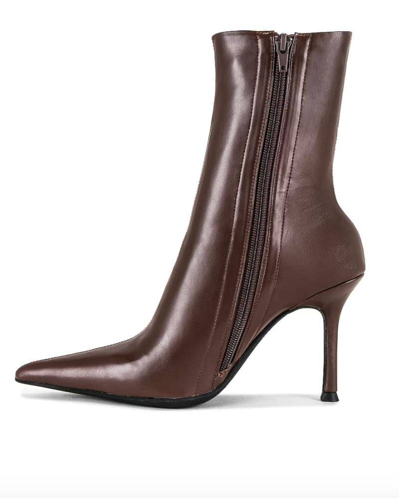 Kulit cokelat tua dengan rona warna yang sangat gelap ini, hampir hitam, sangat cocok bagi mereka yang ingin mencoba tren cokelat, tanpa harus berkomitmen penuh. Keempat tali dengan gesper emas memberikan gaya yang unik dan sedikit memberontak pada sepatu ini.
