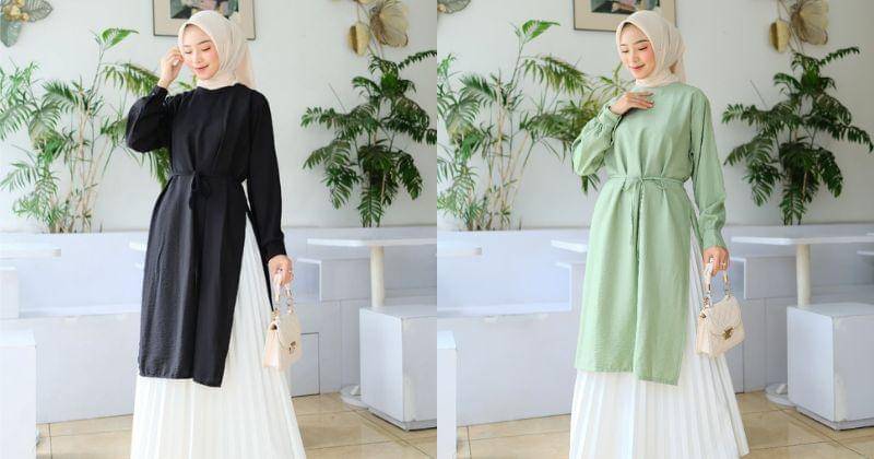 - Kemeja tunik panjang dengan kancing hidup untuk tampilan chic, dijual di Bilalshoponline di Shopee mulai dari Rp69 ribu