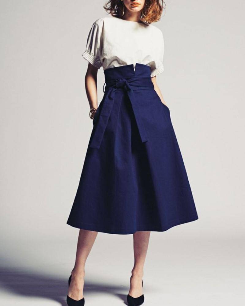 Berencana tampil feminin hari ini? Mama bisa memilih rok. Jika ingin mengenakan rok biru dongker, pastikan atasannya yang tidak membuat penampilan terlihat membosankan dan monoton.