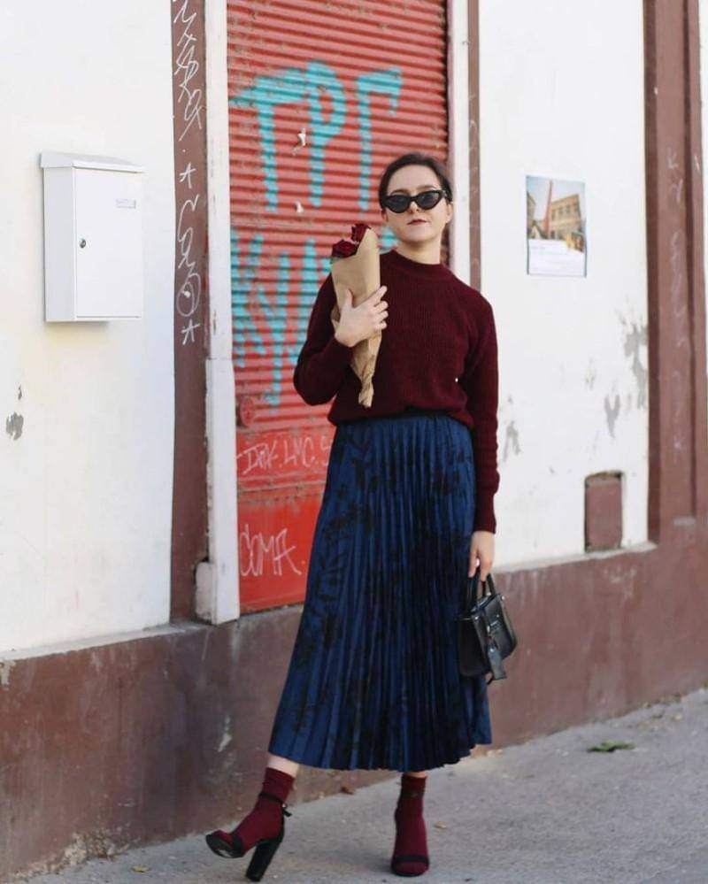 Rok biru dongker juga bisa dipadukan dengan atasan berwarna merah tua atau maroon. Warna ini memberikan kesan yang fierce, jadi cocok untuk Mama yang sedang memerlukan dukungan dari fashion.