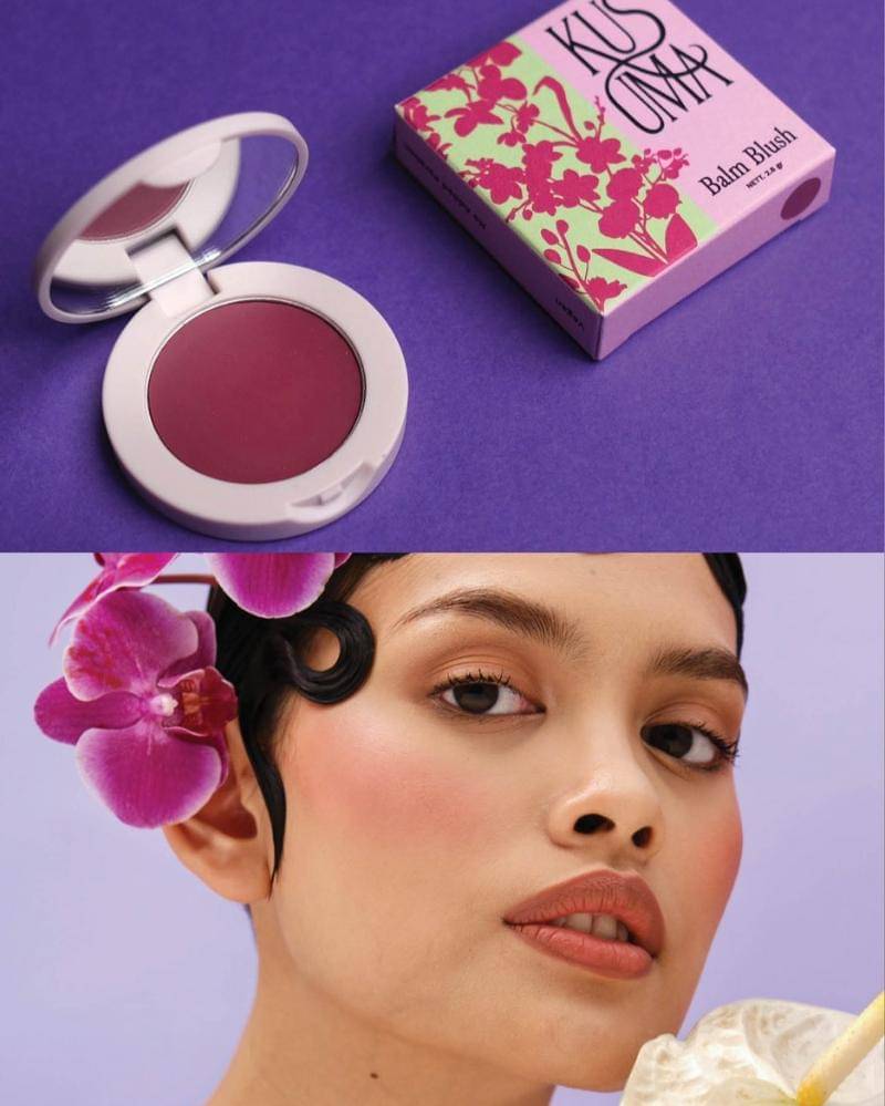 Nah, blush dari Kusuma Kosmetik bisa kamu coba. Produk lokal satu ini sempat viral karena tekstur dan formulanya yang nyaman. Hasil akhir pada pipi juga sangat cantik!