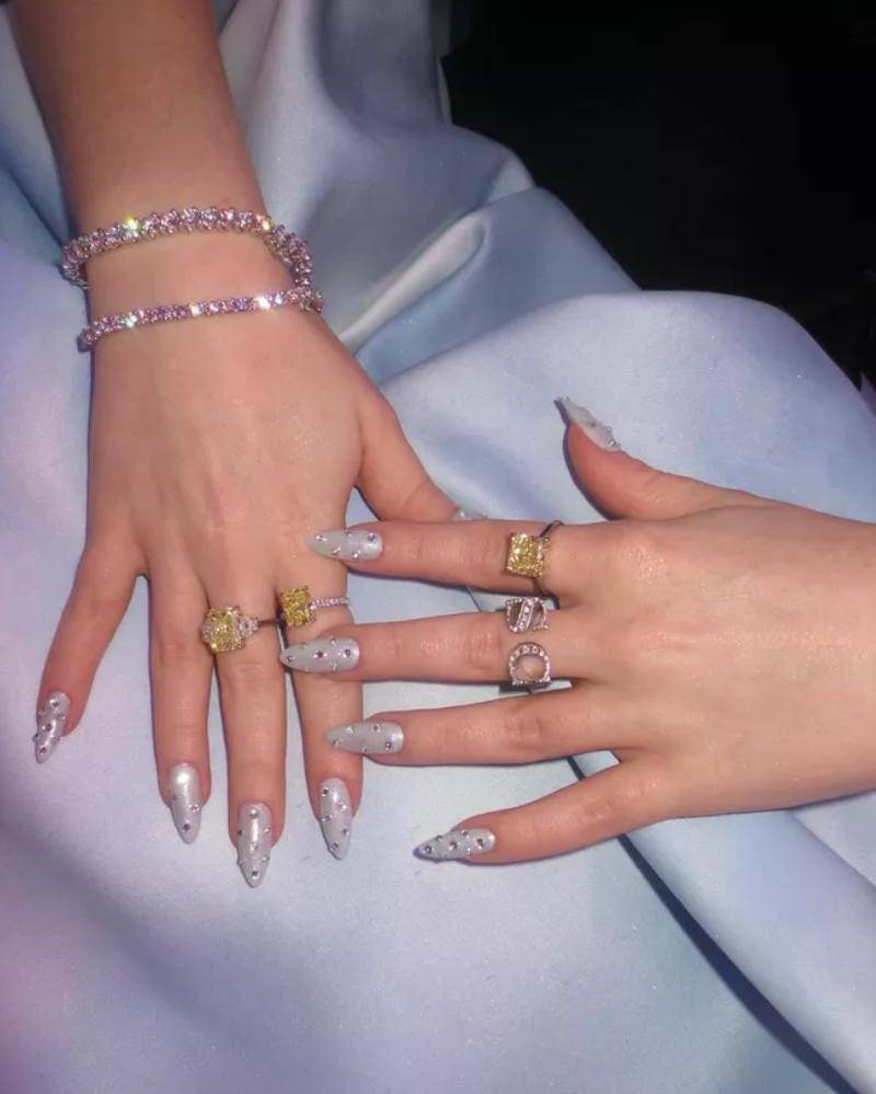 Kuku J-Lo lainnya yang menjadi favorit banyak penggemar adalah kuku lip gloss berhiaskan berlian yang ikonik, yang menggunakan Apres' Vintage Carnation dalam shade "Vintage Carnation". Apakah Mama mau coba juga?
