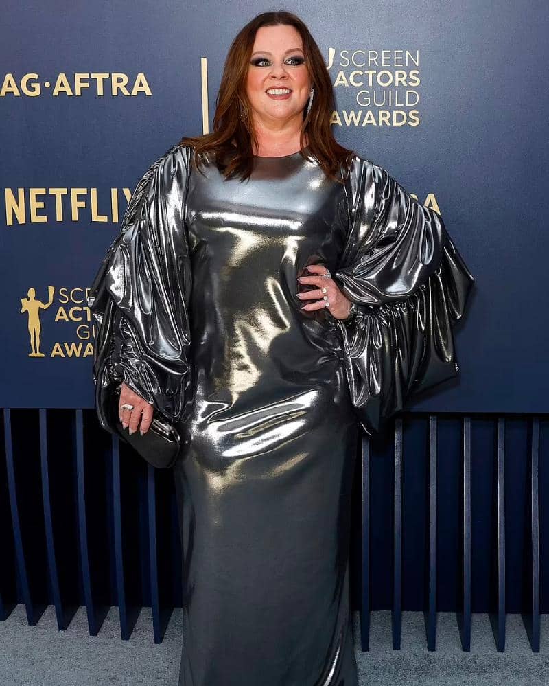 5. Melissa McCarthy, memilih gaun metalik ala tinfoil