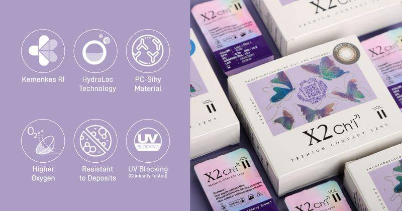 Softlens X2 CH’I dibuat dari Phosphorylcholine (PC). Bahan ini merupakan blokompatibel yang umum digunakan dalam Implan medis dan prastetik.