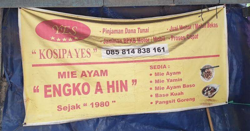 Sebagai salah satu mi ayam tertua di Jakarta Selatan, Mie Ayam Engko A Hin telah mempertahankan kualitasnya selama lebih dari 40 tahun. Daging ayam cincang yang manis gurih dipadukan dengan pangsit goreng menjadi menu andalan di tempat ini.