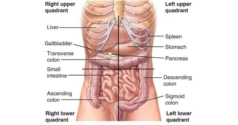 Perut sebelah kiri berisi beberapa organ yang tersebar sebagai berikut: