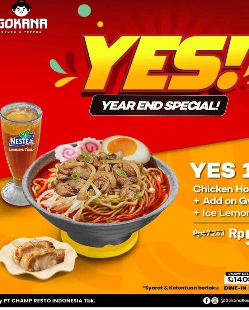 Ingin makan menu Jepang? Ada juga promo akhir tahun dari resto Gokana. Kamu bisa mendapatkan paket komplit yang hemat dengan harga mulai Rp 58.000-an saja.