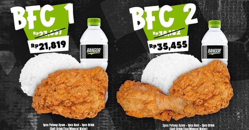 Burger Bangor punya promo yang berlaku hingga tanggal 31 Desember 2023. Promonya untuk paket Bangor Fried Chicken (BFC) yang harganya jadi Rp 21 ribuan saja.