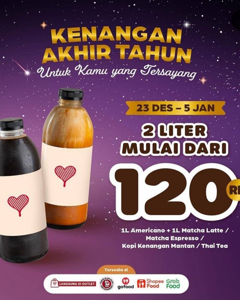 Untuk Mama yang pencinta kopi, ada promo dari Kopi Kenangan yaitu 2 liter dengan harga mulai dari Rp 120 ribu. Kamu bisa membeli 1 liter amerikano dan 1 liter matcha latte/matcha espresso/kopi kenangan mantan/thai tea.