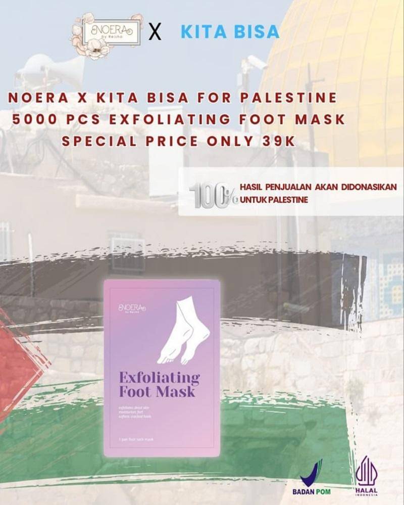 Noera kini bekerja sama dengan KitaBisa untuk menggalang donasi yang akan disumbangkan ke Palestina. Produk yang dipilihnya adalah Noera Exfoliating Foot Mask.