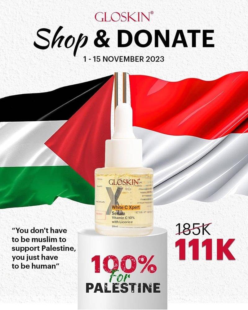 Menginginkan kedamaian, Gloskin pun turut membuka peluang para pelanggannya untuk turut berdonasi. Mereka akan menyumbangkan 100% penjualan dari produk Gloskin White C Xpert.