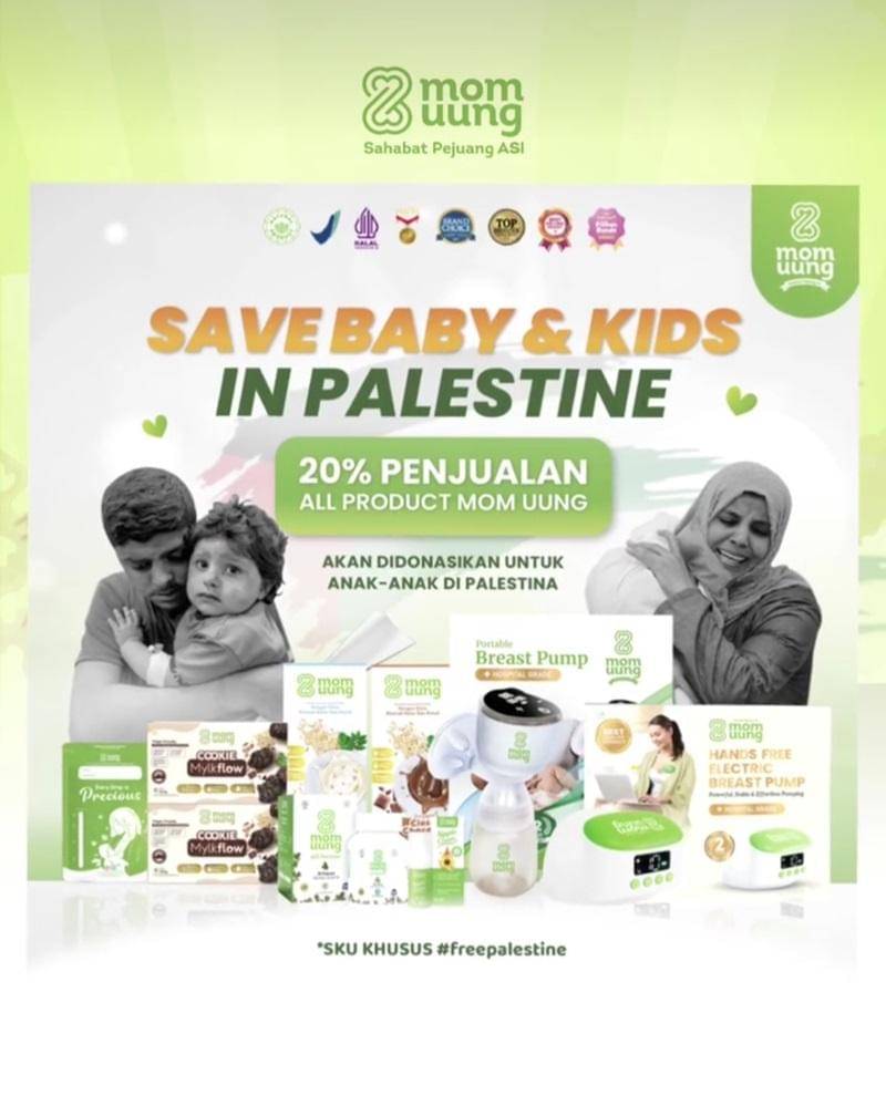 Dimulai dari sanalah, akhirnya ada beberapa produk dari Mom Uung dikhususkan untuk donasi ke Palestina. 20% dari keuntungan menjual produk ini akan disumbangkan ke Palestina.