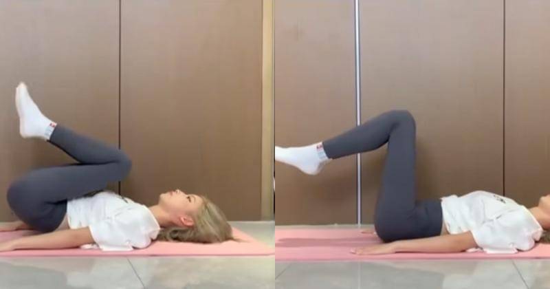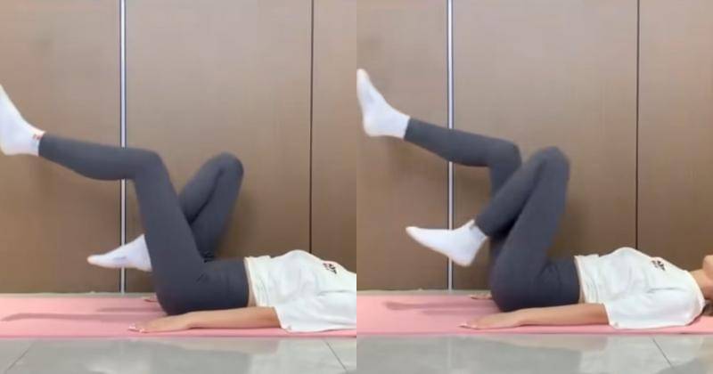 Masih wajib menggunakan yoga mat, gerakan satu ini sama dengan gerakan yang sebelumnya, kamu harus melakukan crunch. Tapi kali ini, crunch disertai kedua kaki yang bergerak naik-turun.