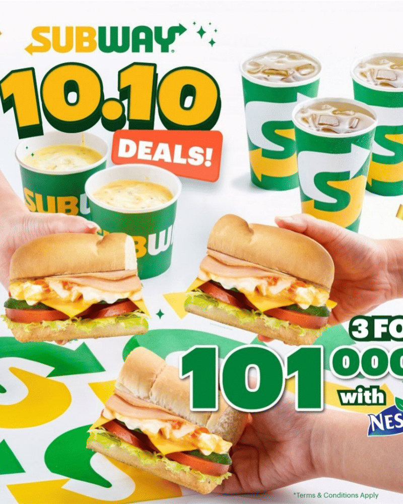 Yang satu ini cocok dihabiskan untuk bertiga ada promo dari Subway yaitu 1 roti yang bisa dibagi menjadi tiga. Promonya adalah 1 chick n chick footlong, 2 chicken creamsoup dan 3 jasmine tea/lemon tea.
