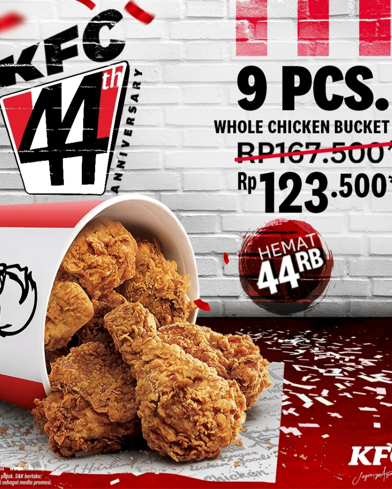 Kamu bisa membeli total sembilan potong ayam dengan harga Rp123.500 saja, alias hemat Rp44 ribu, lho.