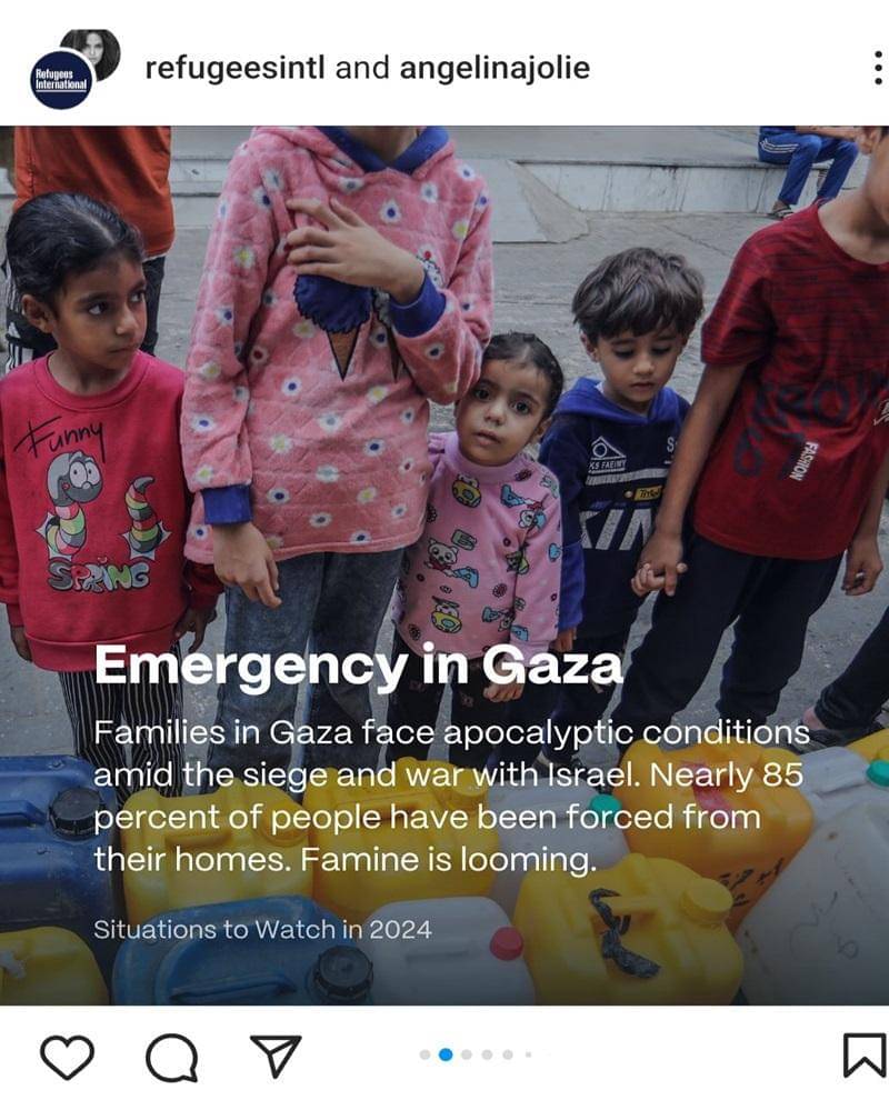 Salah satu seleb yang tak takut dengan ancaman pemerintah AS adalah Angelina Jolie. Ia menjadikan sosial medianya sebagai alat untuk penjabaran fakta atas ketidakadilan yang terjadi di berbagai belahan dunia, termasuk Palestina.