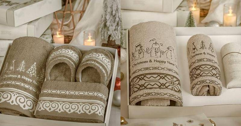 Rekomendasi hampers natal yang sederhana selanjutnya adalah hampers handuk nih, Ma. Selain sederhana, hampers handuk yang dilengkapi dengan handuk mandi, handuk tangan hingga wajah, tentu akan sangat bermanfaat bukan bagi penerima?