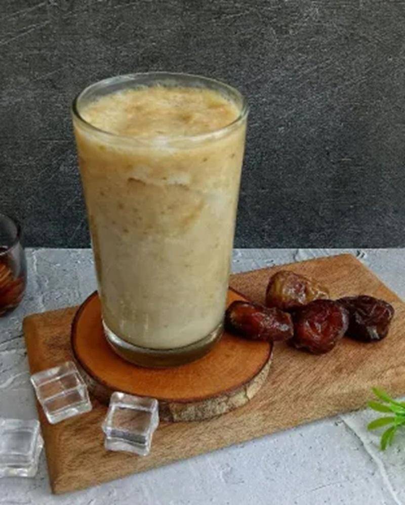 Kemudian, ada es susu kurma yang bisa jadi pilihan. Mama bisa membuat dalam jumlah banyak sekaligus dan menyimpannya di freezer. Minim modal dan minim risiko barang jualan terbuang, ya!