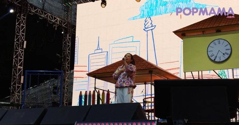 "Aduh, senang banget hari ini di Synchronize, kita semua bisa melestarikan lagu anak Indonesia. Yuk, kita semua save lagu anak. Setuju?" ucapnya.