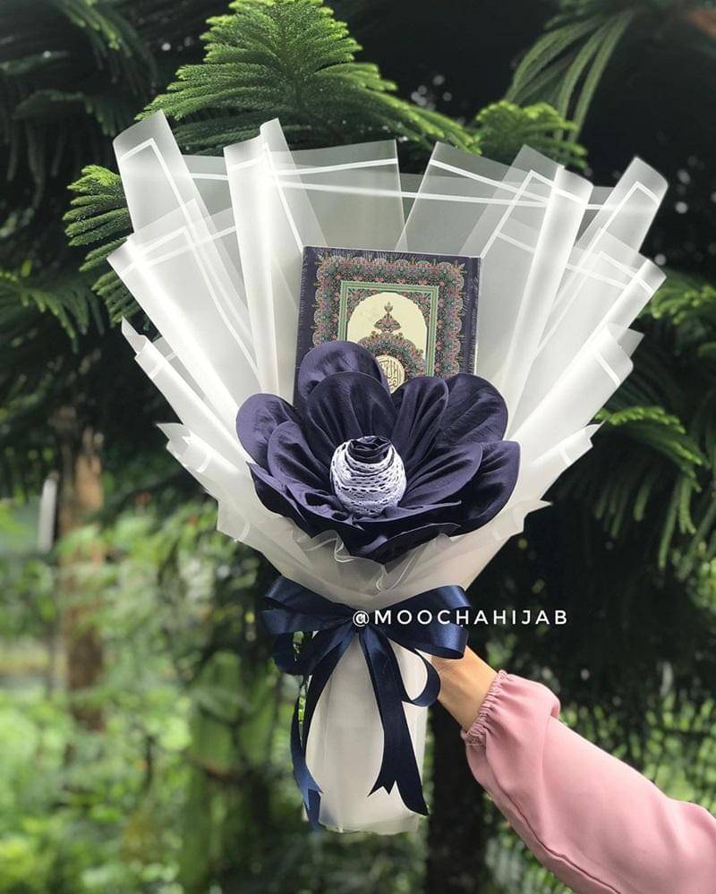 Buket kerudung ini bisa dibentuk dengan cara digulung dan disusun berdasarkan warna yang cocok. Terlebih lagi, sudah banyak jasa pembuatan buket kerudung yang bisa dipilih, lengkap dengan jenis kerudung yang diinginkan.