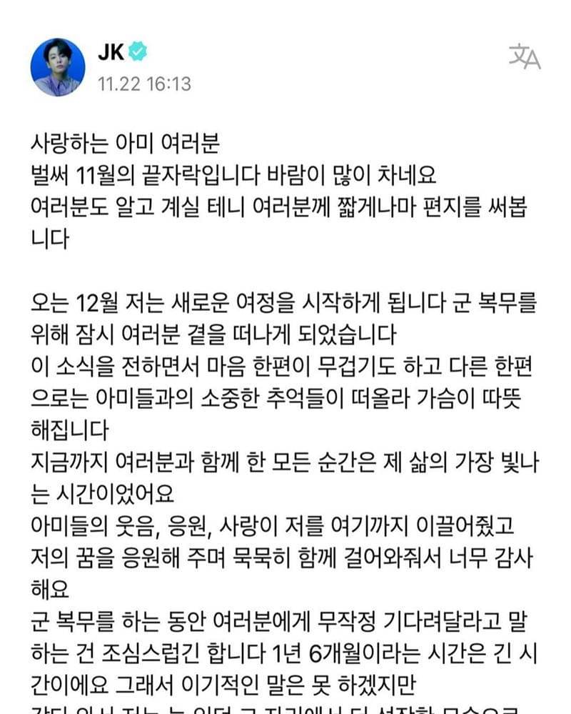Dalam postingan di Weverse, Jungkook terlihat sedang mengungkapkan perasaan dan rencananya kedepan.