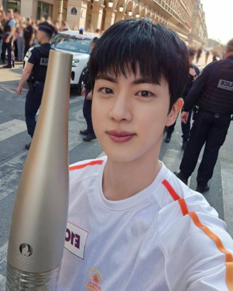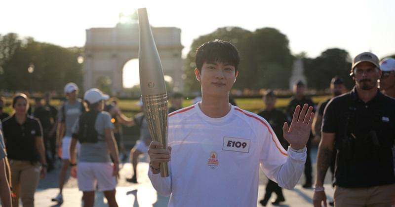 Jin BTS menjadi pembawa obor pertama di Olimpiade Paris 2024. Ia memulai perjalanannya dari titik pertama di Museum Louvre. Ia membawa obor Olimpiade dengan karismatik sampai ke titik estafet berikutnya.