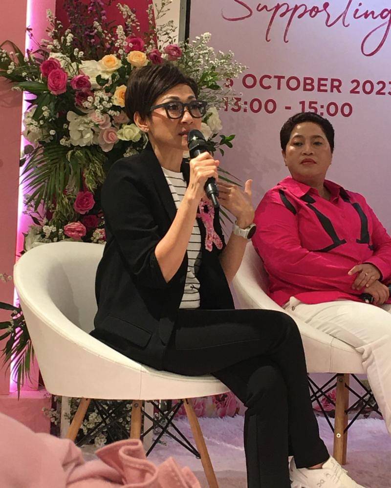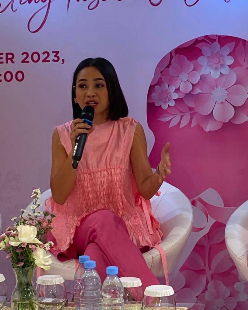 Narasumber lain yang hadir pada acara sharing session mengenai kanker payudara adalah Kezia Kandou.
