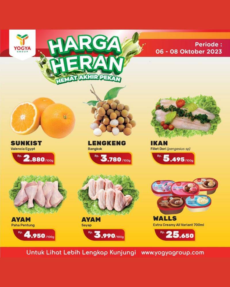 Ada Ayam seharga Rp 4.950/100gr sampai susu Ultra UHT varian Chocolate dan Full Cream yang dibanderol seharga Rp 15.950, dengan ketentuan maksimal 12 pcs/konsumen, ya. Menarik banget kan? Nih, Popmama.com bocorkan lebih lengkap, katalog Promo HBD41 Yogya 6-8 Oktober 2023.
