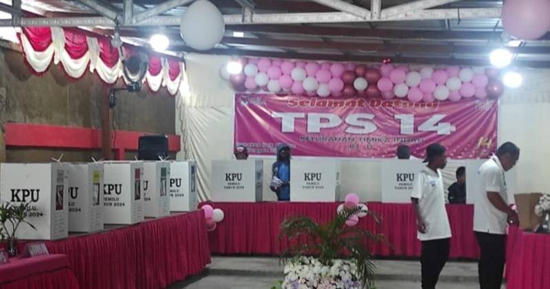 Pemilu digelar bertepatan dengan hari Valentine. Salah satu TPS di Timika, Papua pun dibuat seromantis mungkin. TPS 14 Timika dibuat dengan nuansa pink, putih dan ungu.