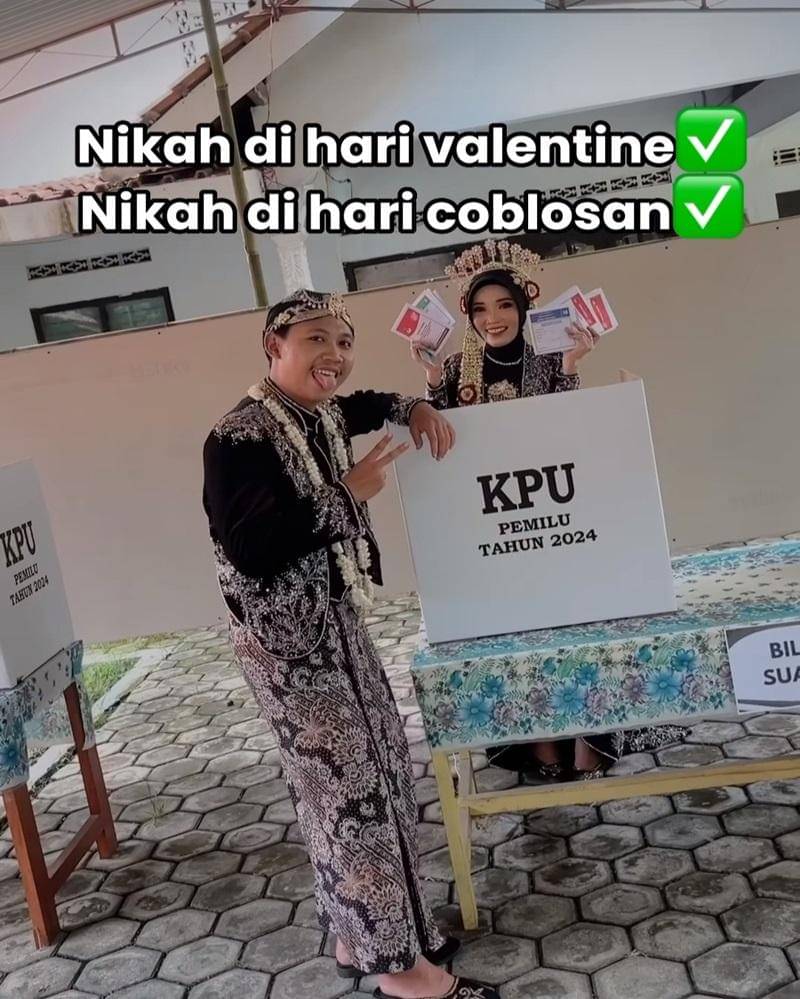 Rabu bukanlah hari yang umum untuk menggelar pernikahan. Namun nyatanya, ada sepasang pengantin yang memutuskan untuk menikah di hari pemilu 2024.