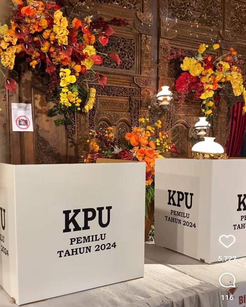 Lengkap dengan tenda, gebyok, kursi bersarung, barisan meja, serta rangkaian bunga, nyoblos di sini rasanya ingin makan prasmanan deh!