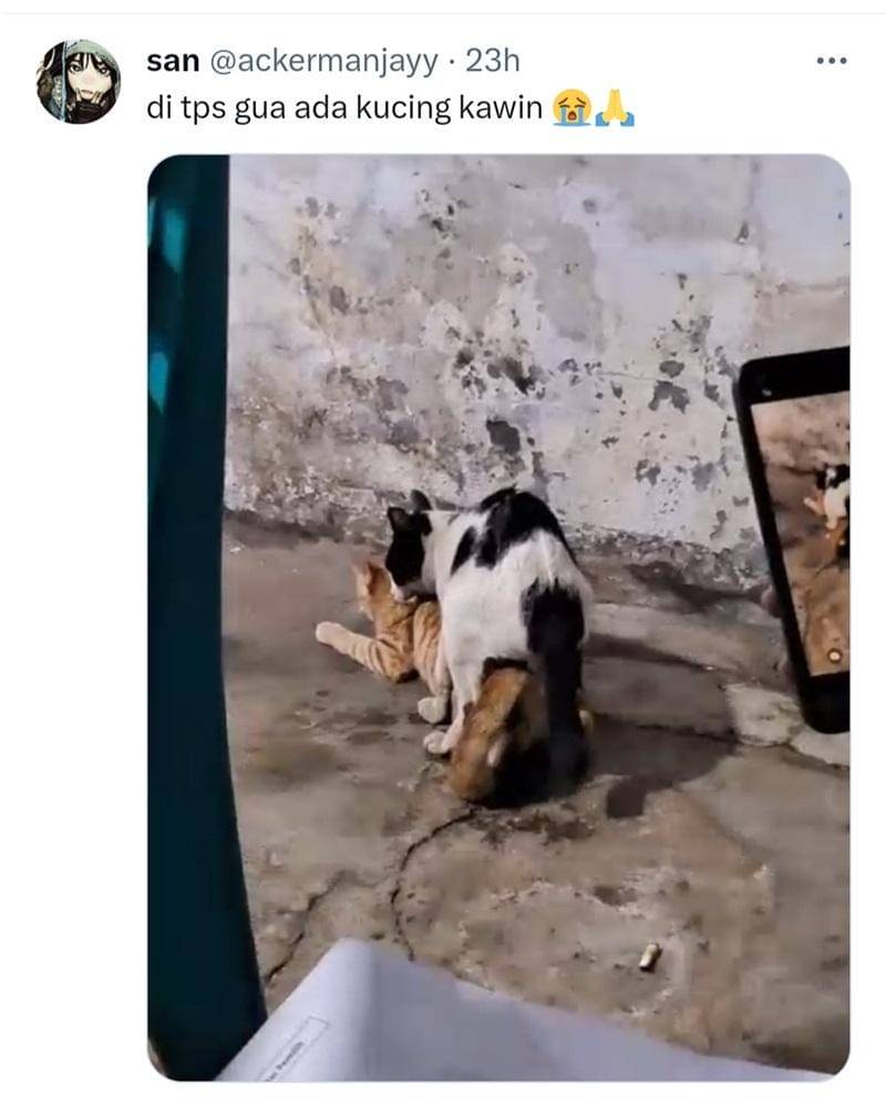Salah satu warga bercerita di Twitter mengenai adanya kucing kawin di TPS dekat rumahnya. Otomatis, warga pun langsung memotretnya!