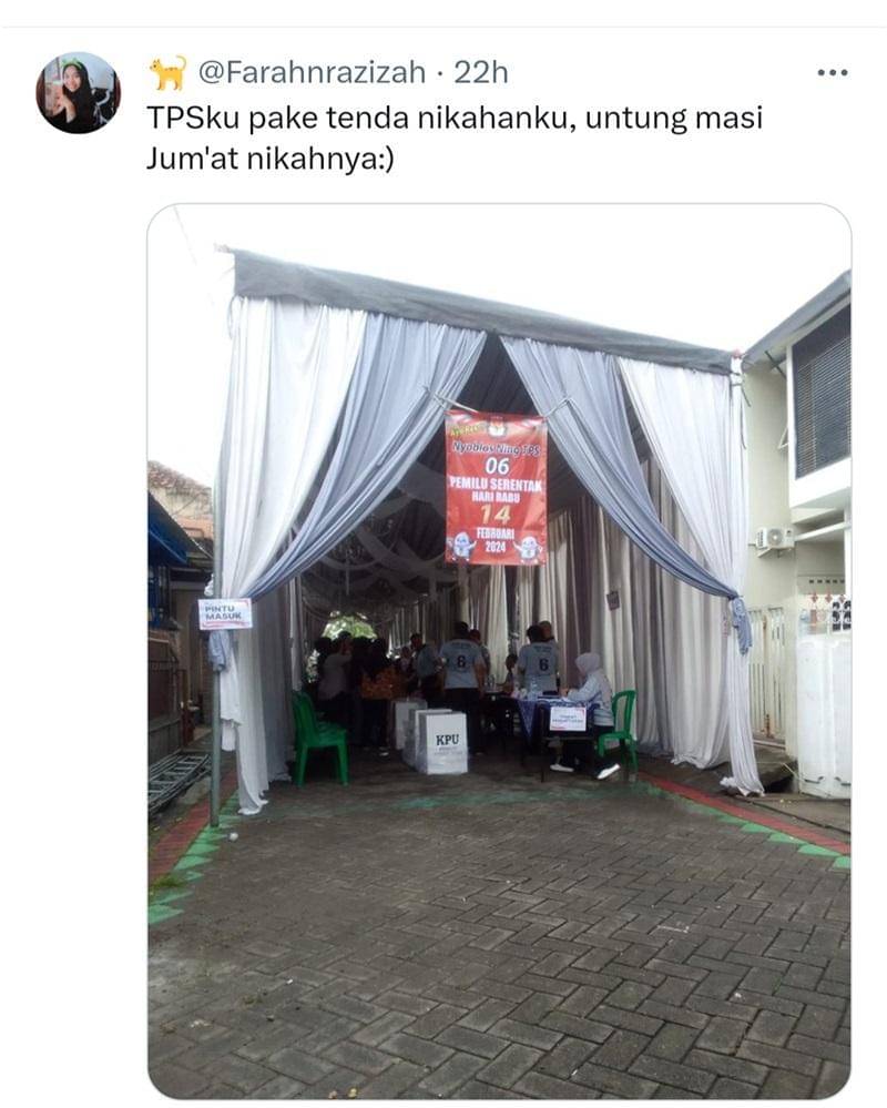 Seunik apa tema tenda TPS yang ada di rumah Mama? Beberapa warganet membagikan TPS di dekat rumah mereka.