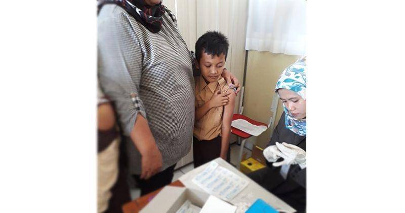 Foto Lucu Anak-Anak SD Saat Suntik Imunisasi Difteri
