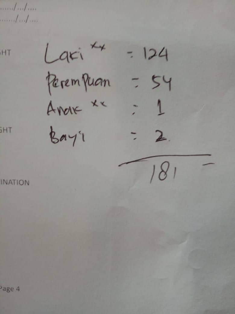 Hingga saat ini dinyatakan terdapat 181 Penumpang Lion Air hilang, 2 diantaranya adalah bayi.