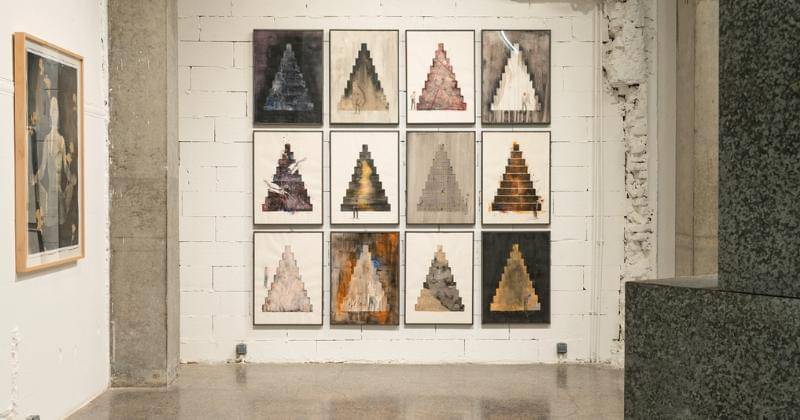 Terinspirasi dari ziggurat, struktur monumental peradaban Mesopotamia, Suwage menghadirkan 11 karya yang memancarkan aura misterius dan kontemplatif. Monumen Ego menjadi pameran utama, dikelilingi 12 karya pendamping di atas kertas yang menggambarkan potret diri sang seniman. Potret-potret ini disusun dalam berbagai ukuran dan susunan, menciptakan dialog antara ego individu dengan kemegahan monumen.