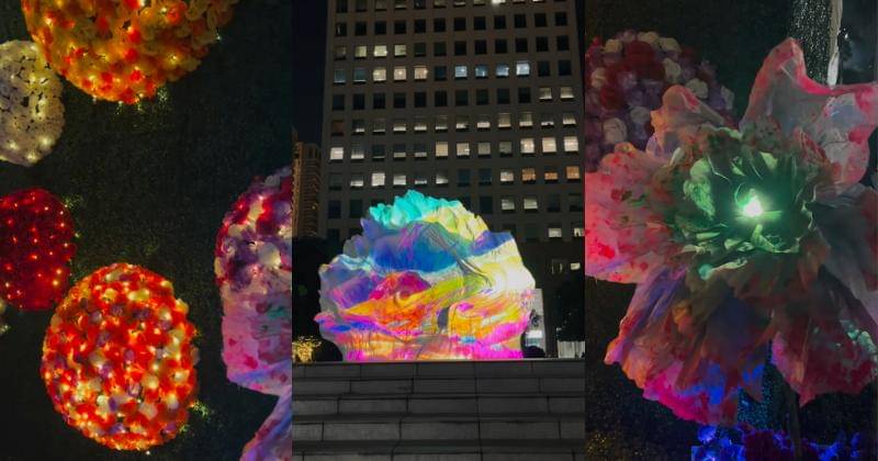Di instalasi ini kamu bisa melihat bunga-bunga berhiaskan lampu-lampu indah, serta gambaran musim panas yang cantik. Berbagai semburat warna mulai dari pink, biru, ungu sampai kuning berpadu menciptakan paduan warna yang ciamik.
