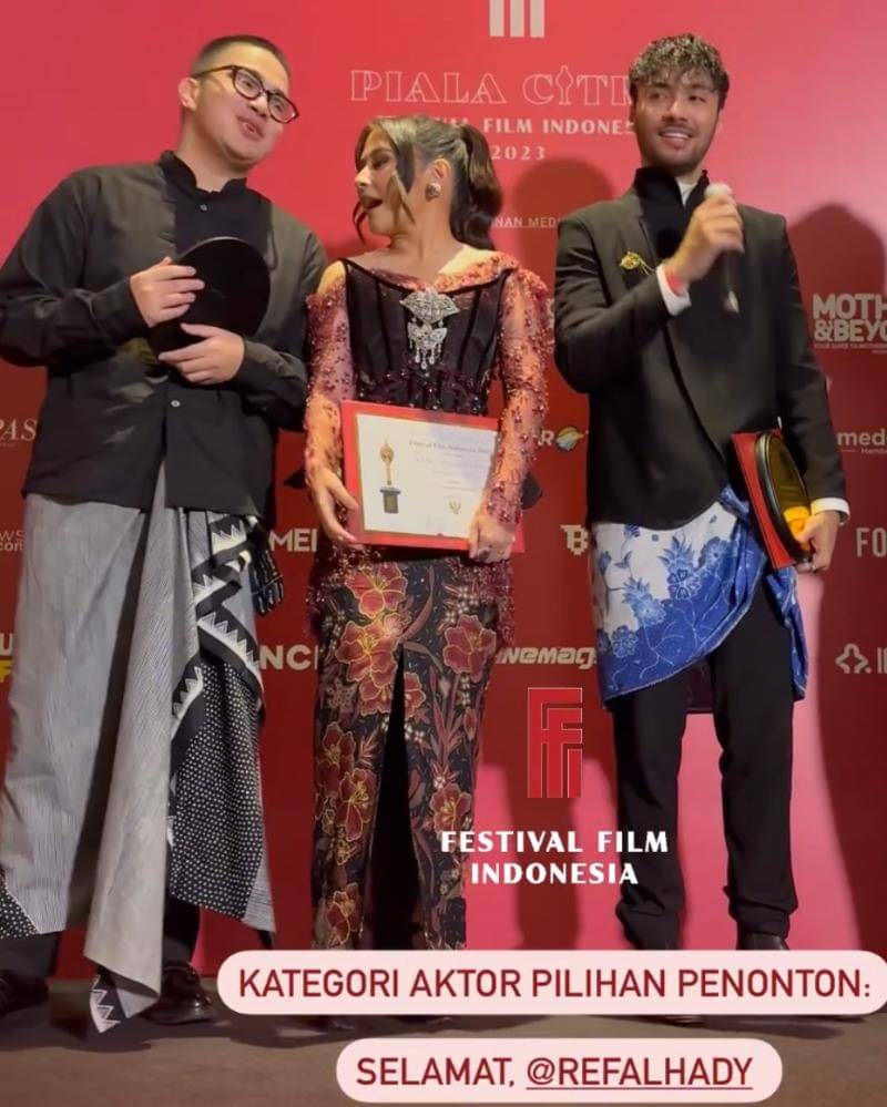 Refal bersama tim juga memenangkan penghargaan Film Pilihan Penonton dalam Festival Film Indonesia 2023, untuk film "Ketika Berhenti Disini". Hadir dalam busana blazer berwarna hitam dan kain batik biru, Refal Hady tersenyum lebar dan menyampaikan rasa syukurnya ketika menerima piala tersebut.